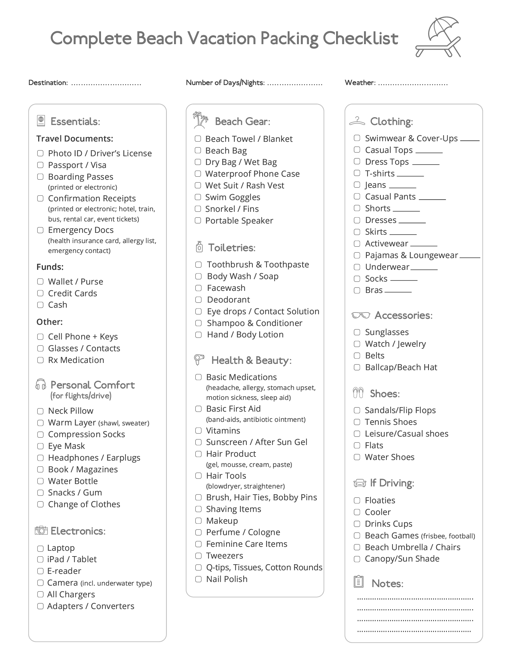 Printable Packing List For Beach Vacation