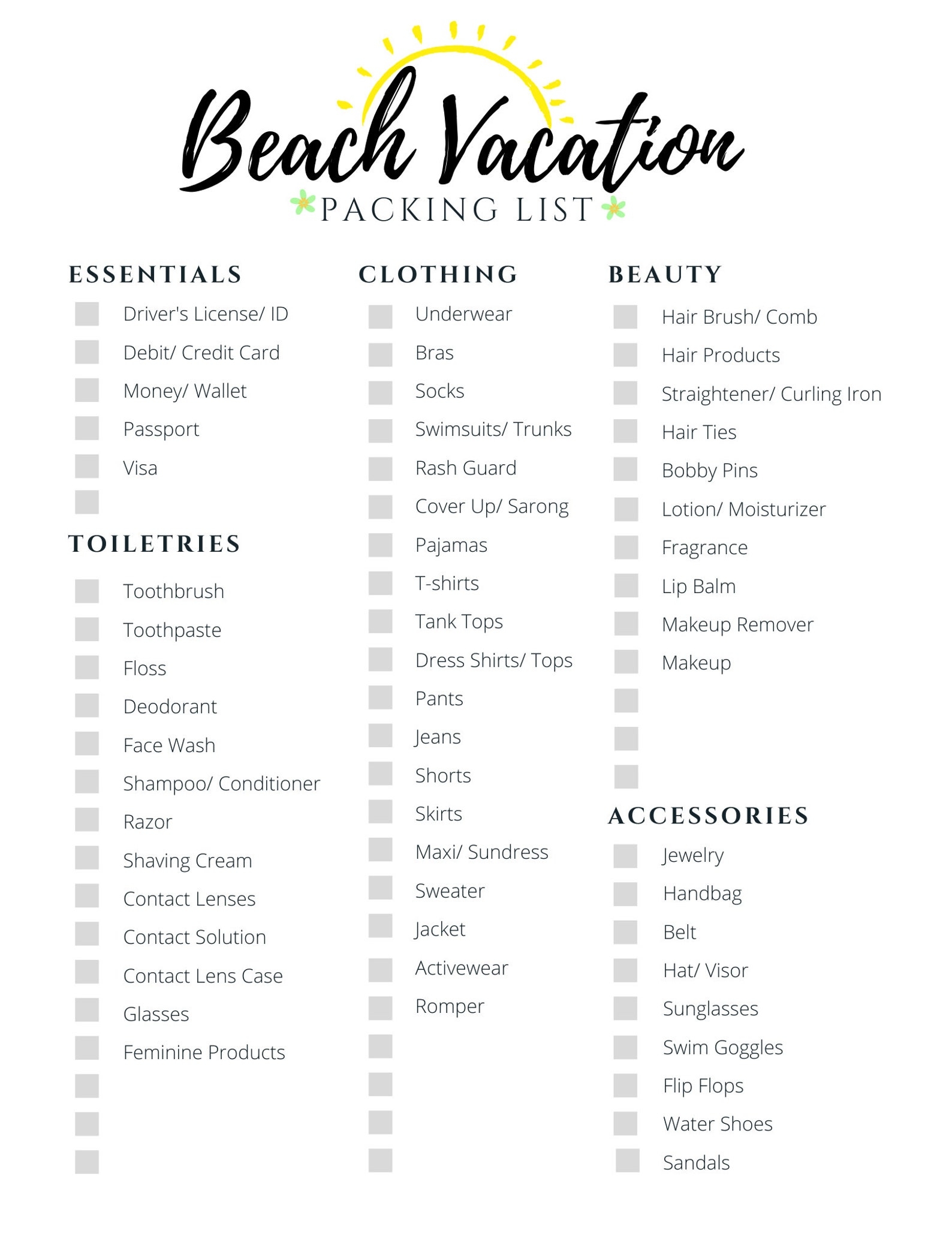 Beach Packing List Printable are pre-formatted files available in formats like PDF, Jpg, or PNG. You can easily access, personalize, and print them Beach Packing List Printable for any use—be it work, study, or personal planning. They serve a diverse set of needs—from weekly schedules and finance sheets to resumes and greeting cards.