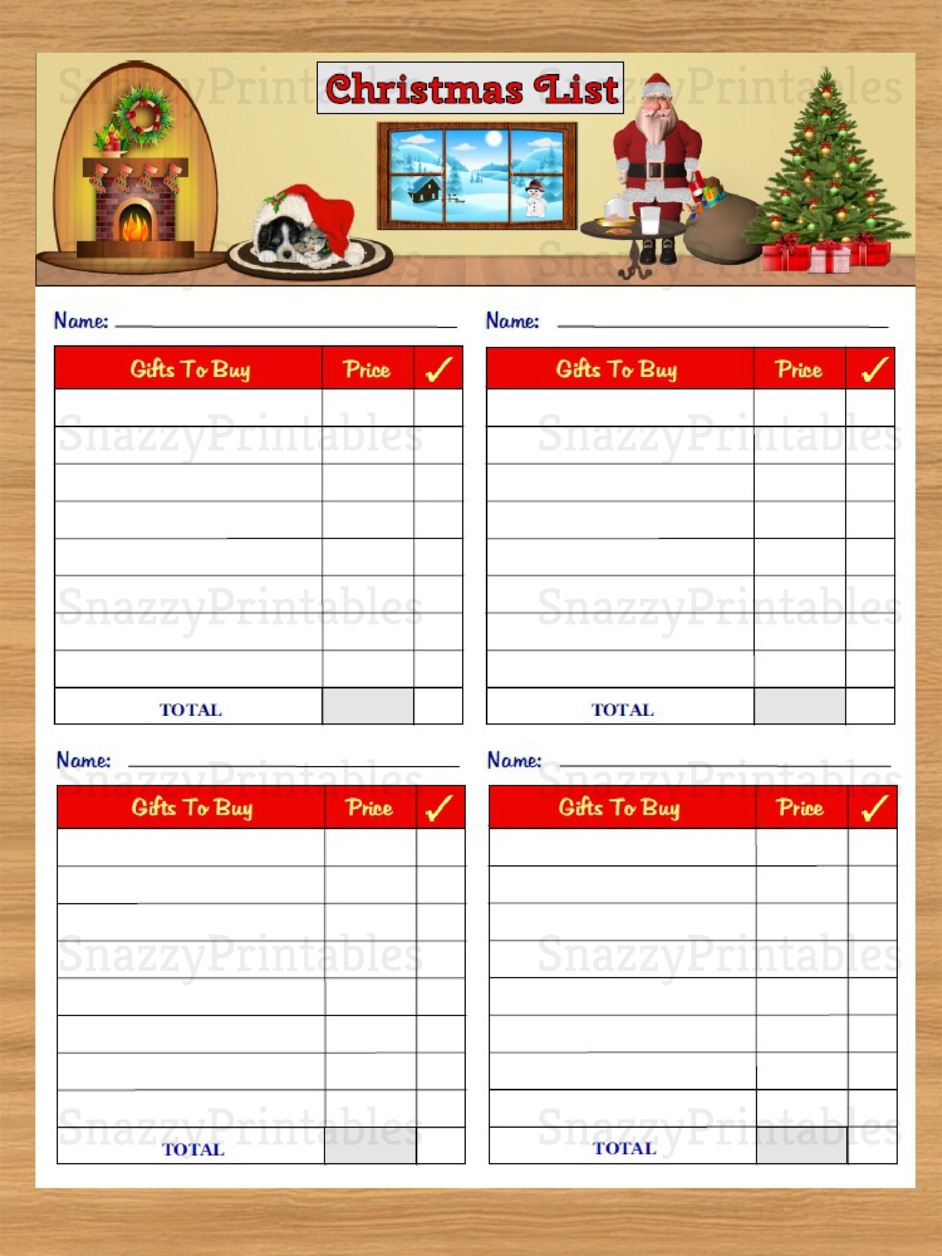 Christmas Gift List Printable Instant Download PDF Snazzy Printables