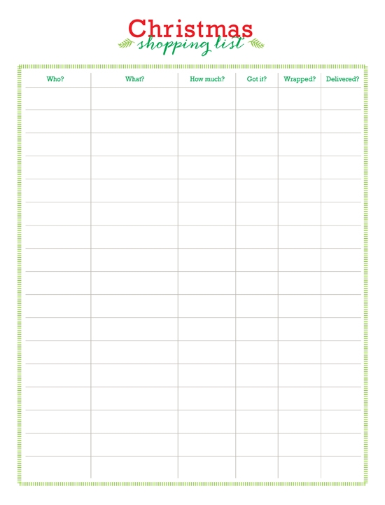 Free Printable Christmas Shopping ListFree Printable Christmas Shopping List