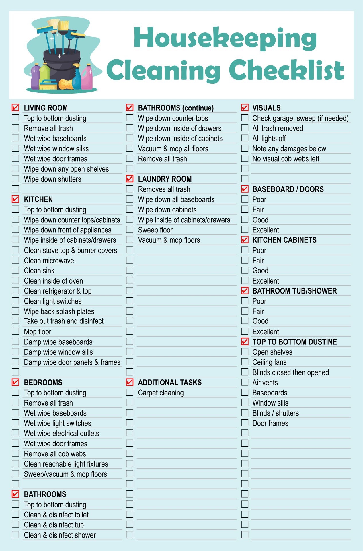 Housekeeping Cleaning Checklist 10 Free PDF Printables PrintableeHousekeeping Cleaning Checklist 10 Free PDF Printables Printablee