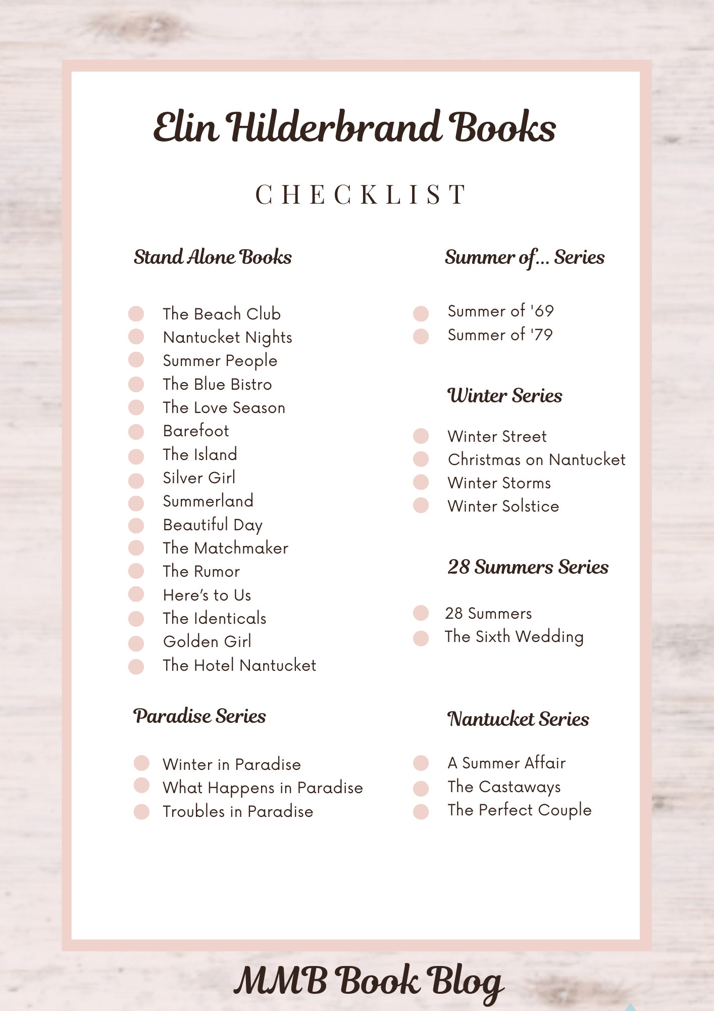 Elin Hilderbrand Books A Printable Checklist