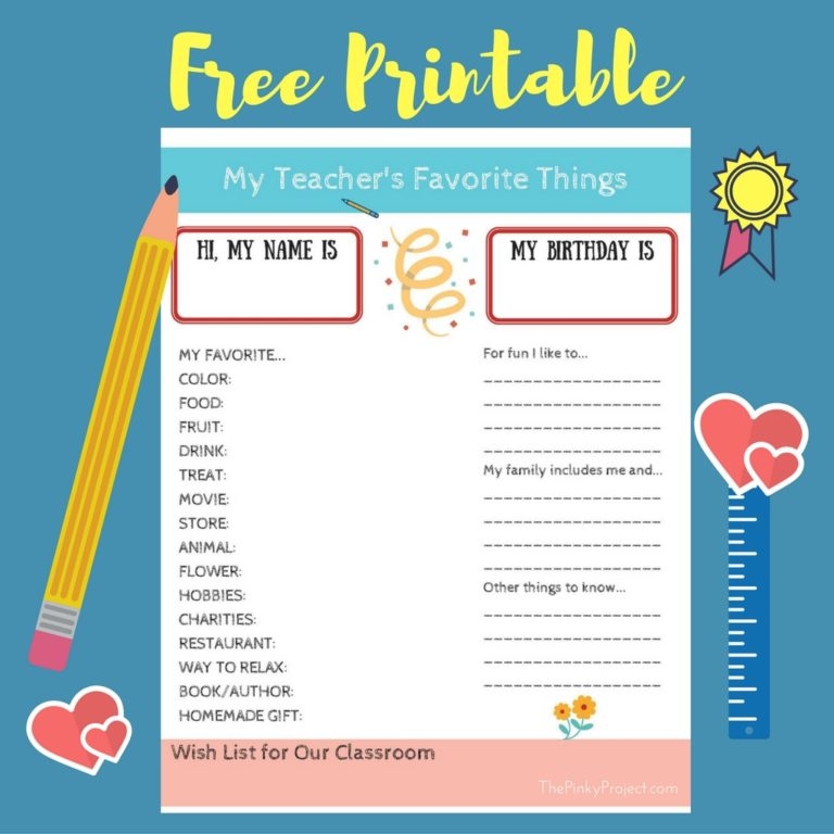 Teacher Favorite Things Form Get To Know Teacher Printable Favorite