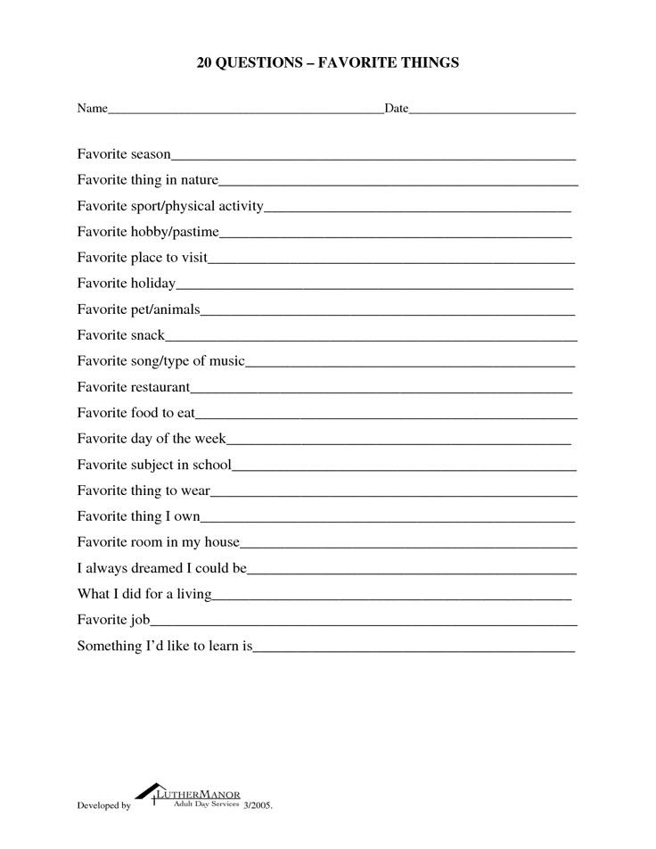 Printable Favorite Things List