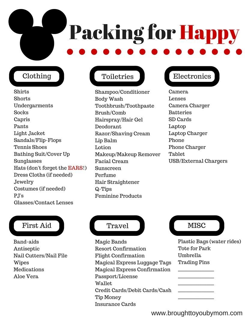 Disney Packing List Printable Bill L Sthilaire
