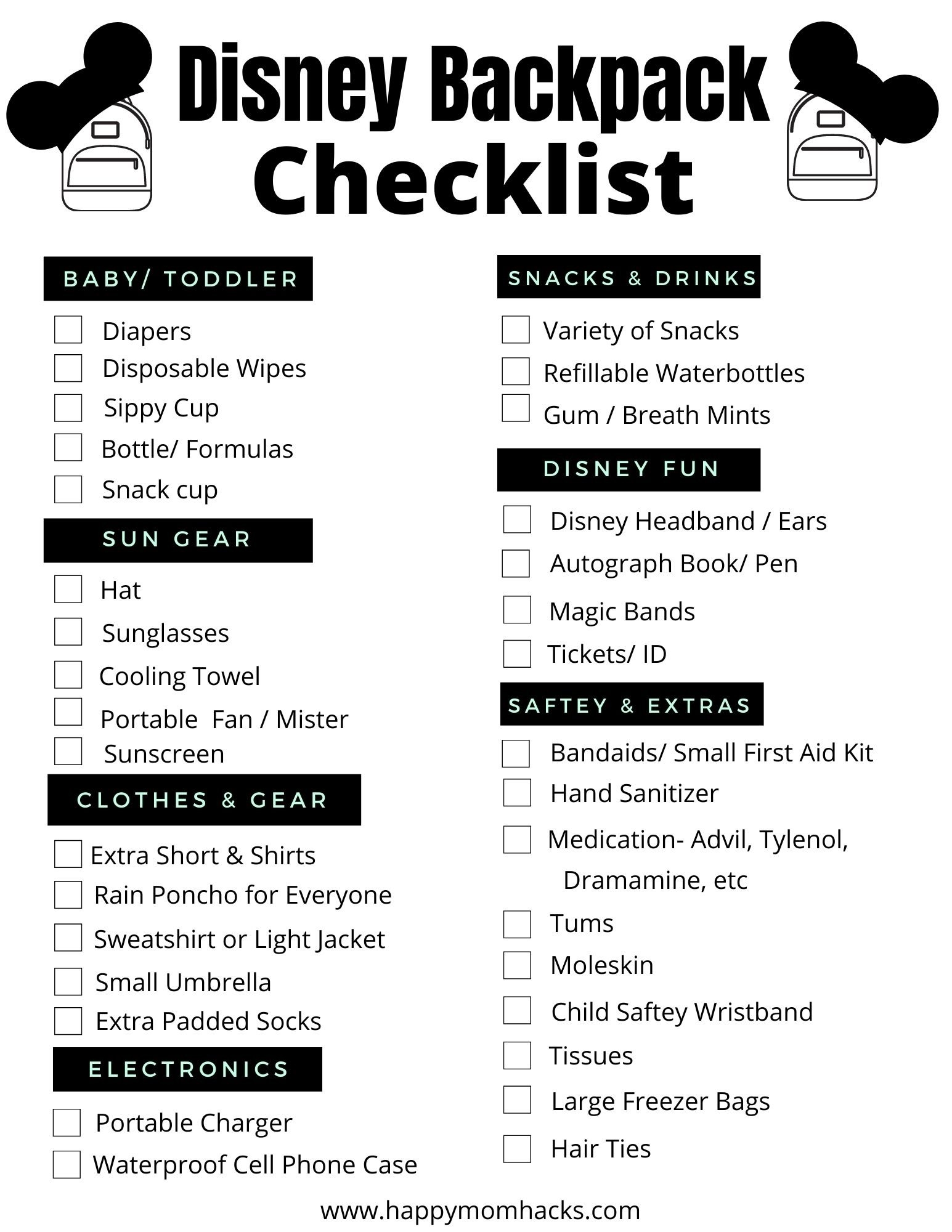 Download and Print Free Printable Disney Packing List