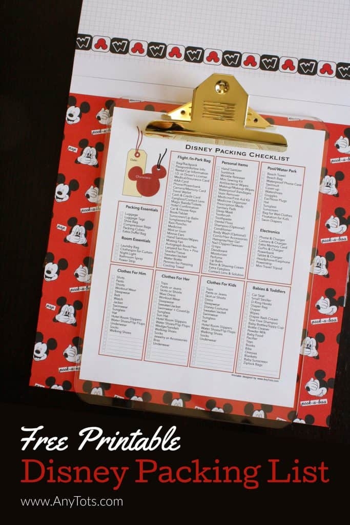 Free Printable Disney Packing List PDF Any Tots