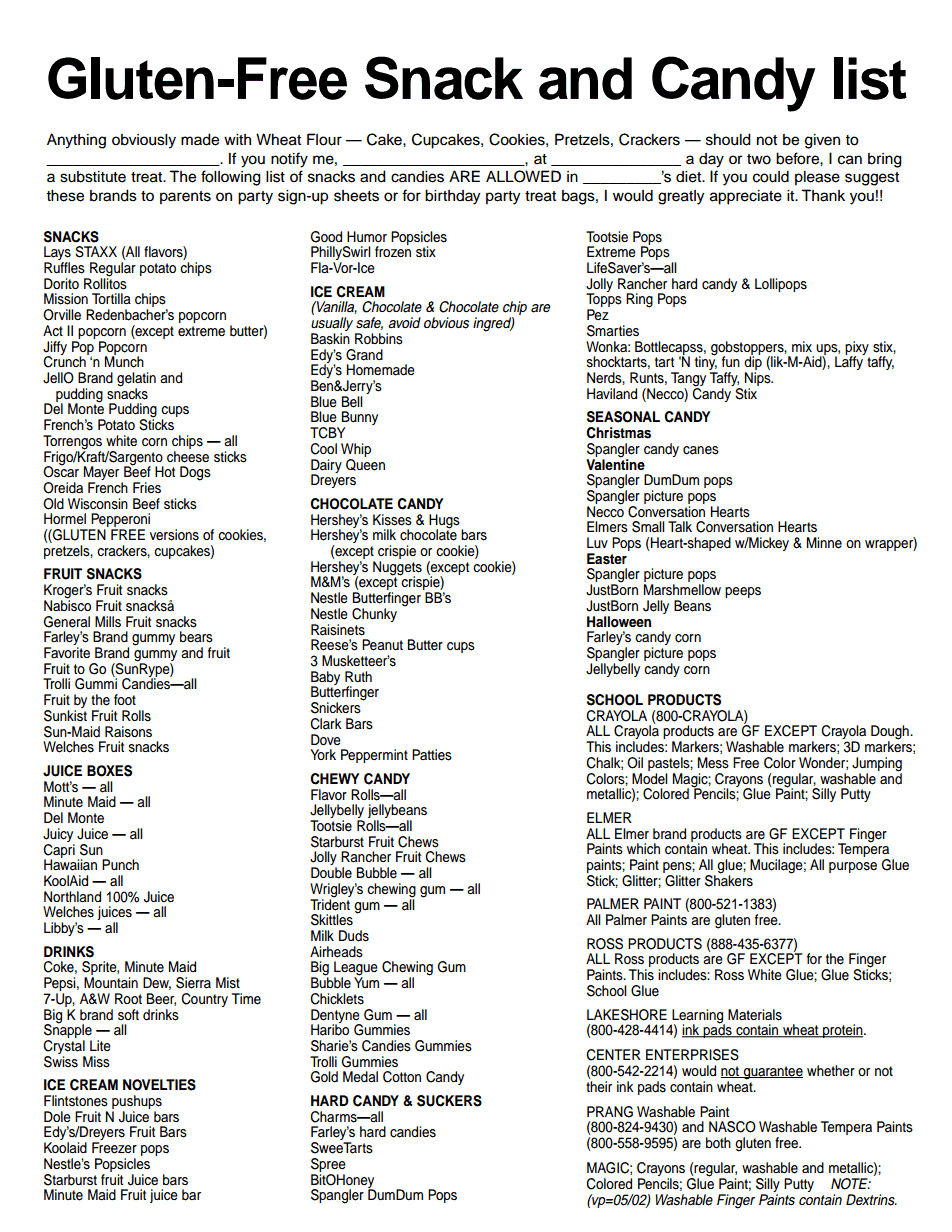 Gluten Free Food List Printable Free Printable