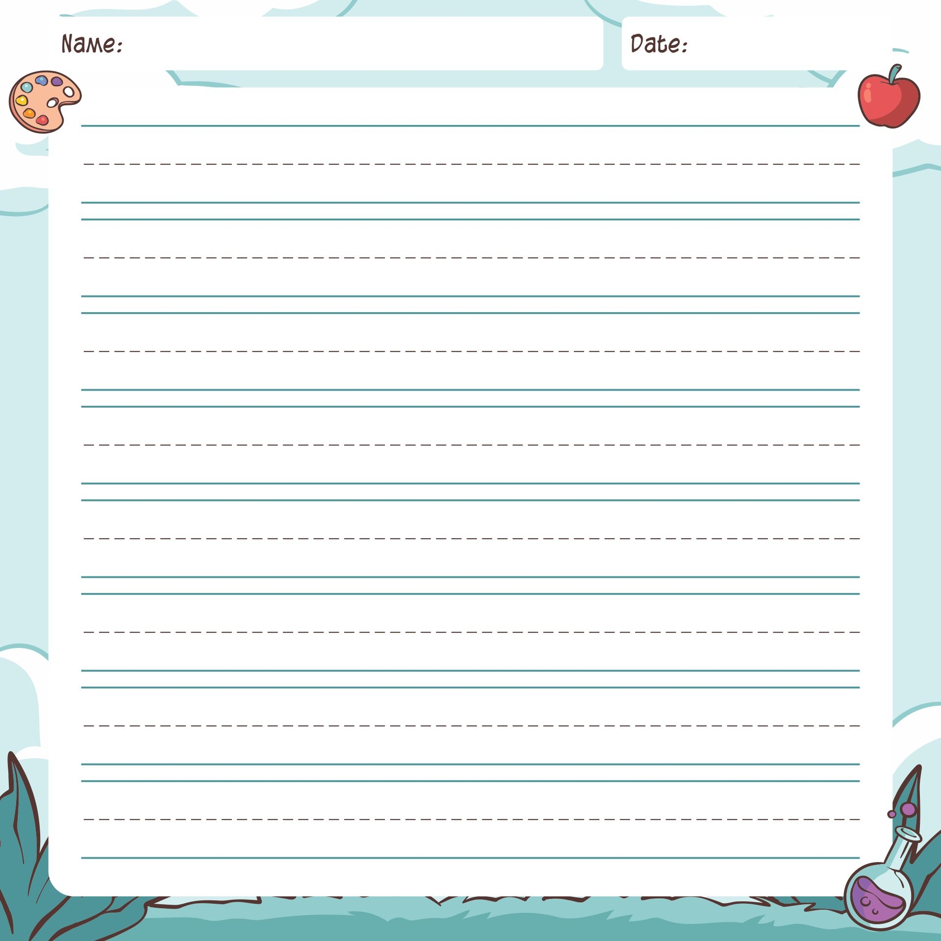 Free printable kindergarten paper comes in various designs and layouts, such as lined paper with dashed lines in the middle to help children learn how to form letters correctly. This type of paper also often includes space for drawing, allowing children to express their creativity while practicing their writing skills.