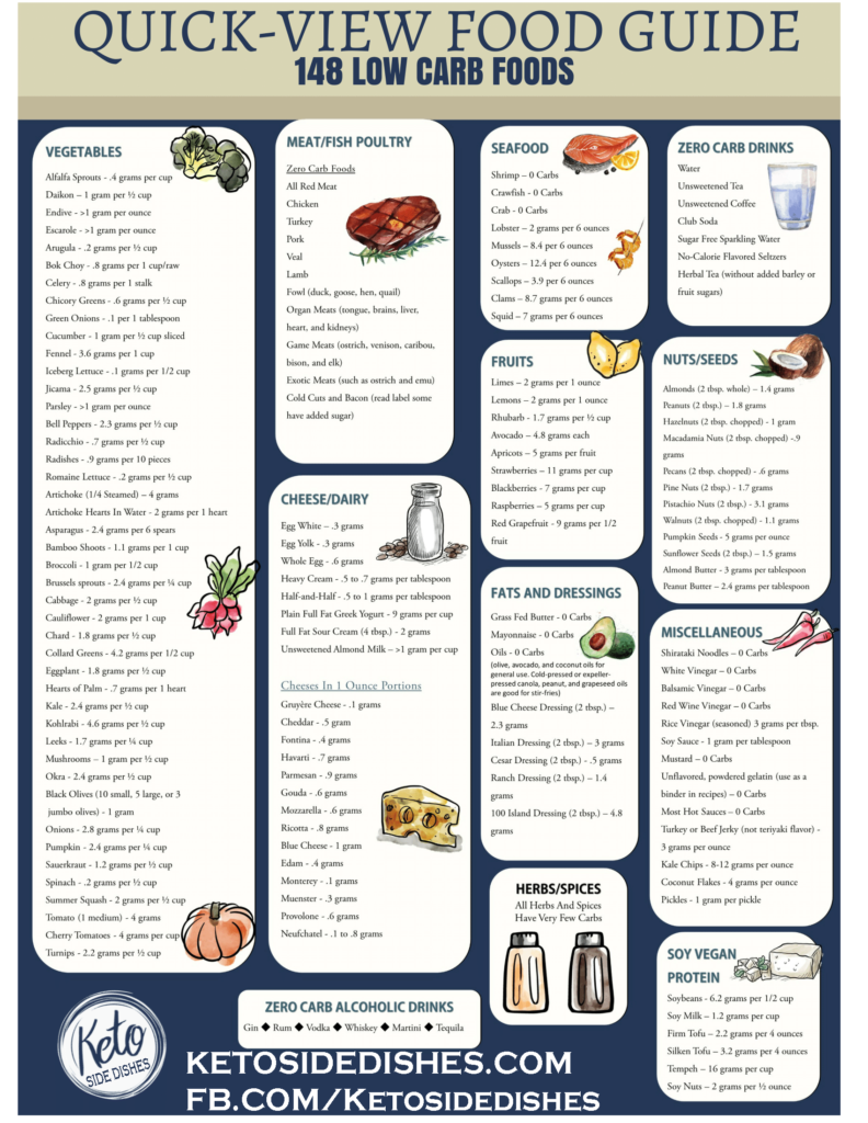 Low Carb Food List Printable Carb Chart Keto Size Me