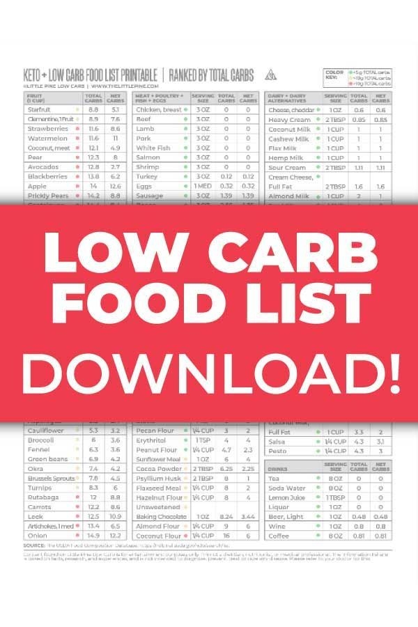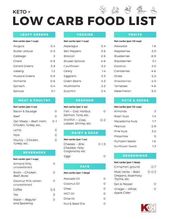 Low Carb Food List Printable Carb Chart Keto Size Me
