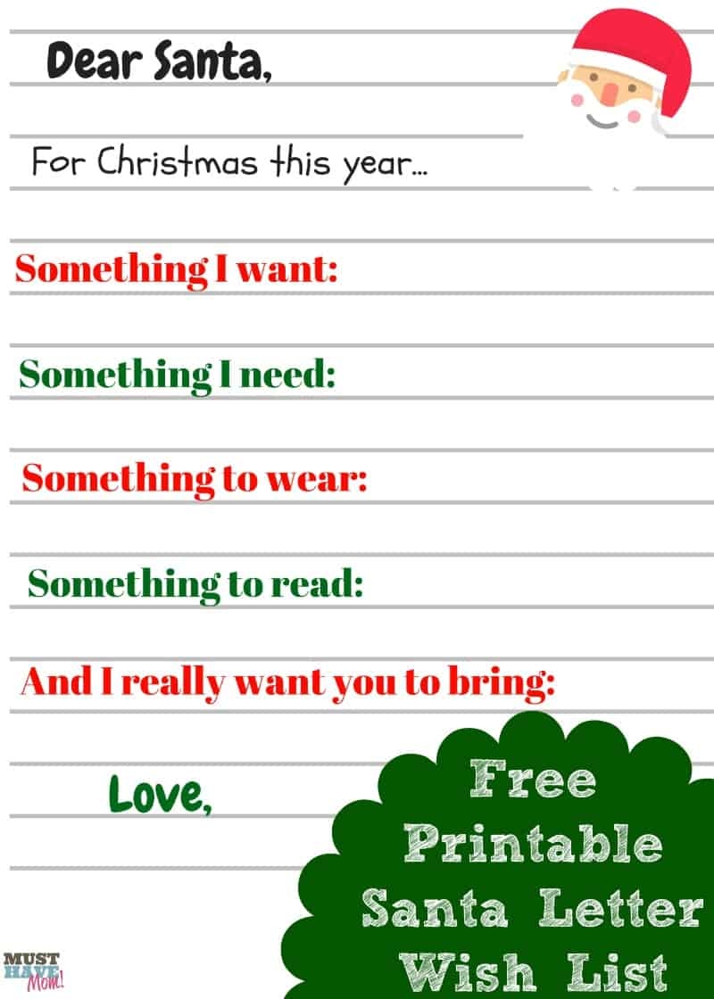 Free Printable Kids Christmas Wish List Santa Letter Must Have Mom