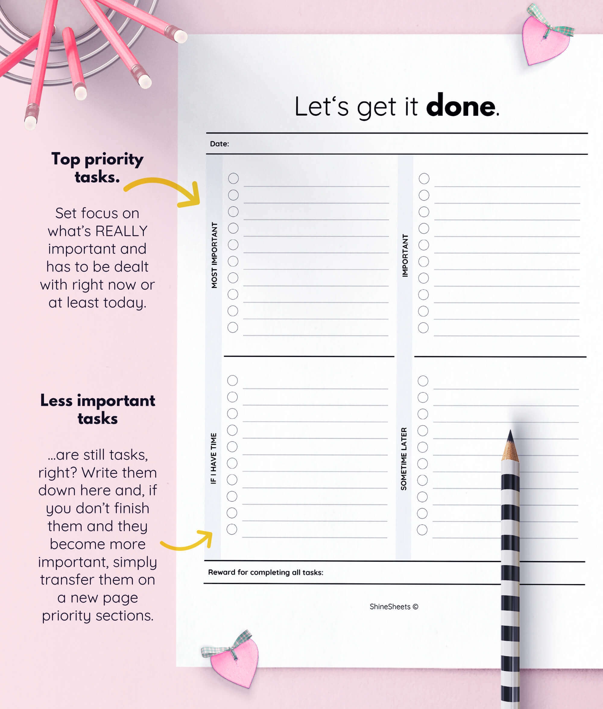 Free Free Printable Task List are pre-designed documents offered in formats like Excel spreadsheets, Word docs, or PDFs. You can download, print, and customize them Free Printable Task List for personal, educational, or professional use. They serve a wide range of needs—from weekly schedules and finance sheets to resumes and greeting cards.