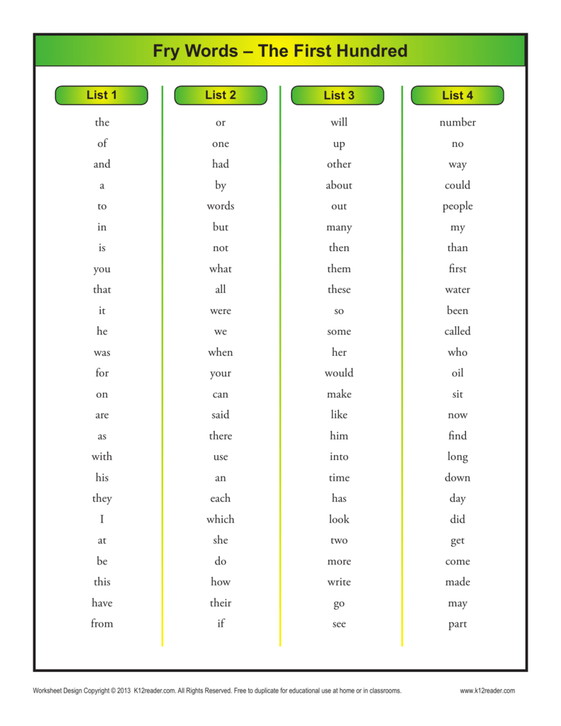 Teaching children to read is one of the most important skills they will learn in their early education. One effective way to help children develop their reading skills is by using Fry Word List Printable. These lists contain the most frequently used words in the English language, making them essential for young learners to recognize and memorize.