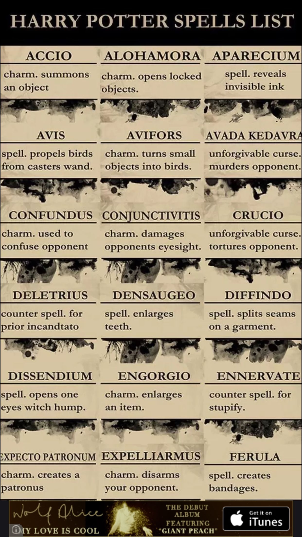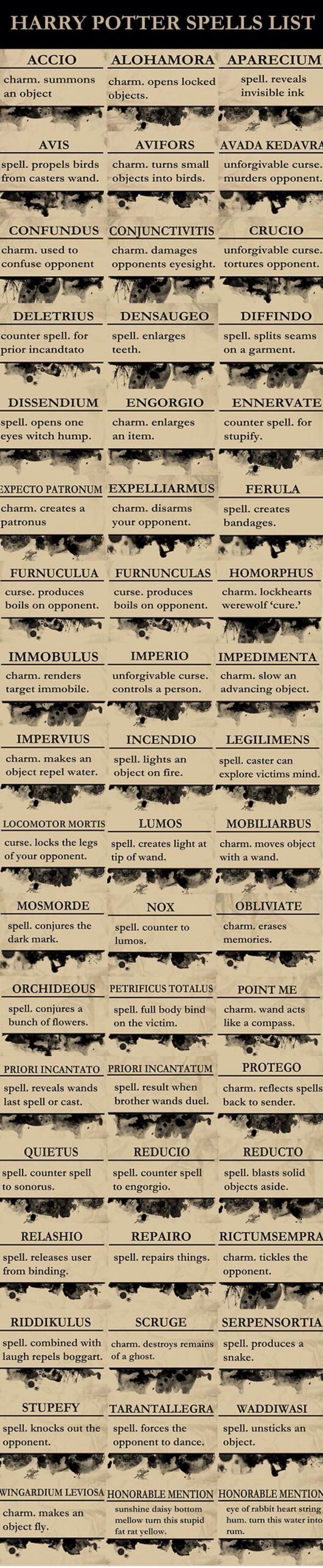 Harry Potter Spell List Printable