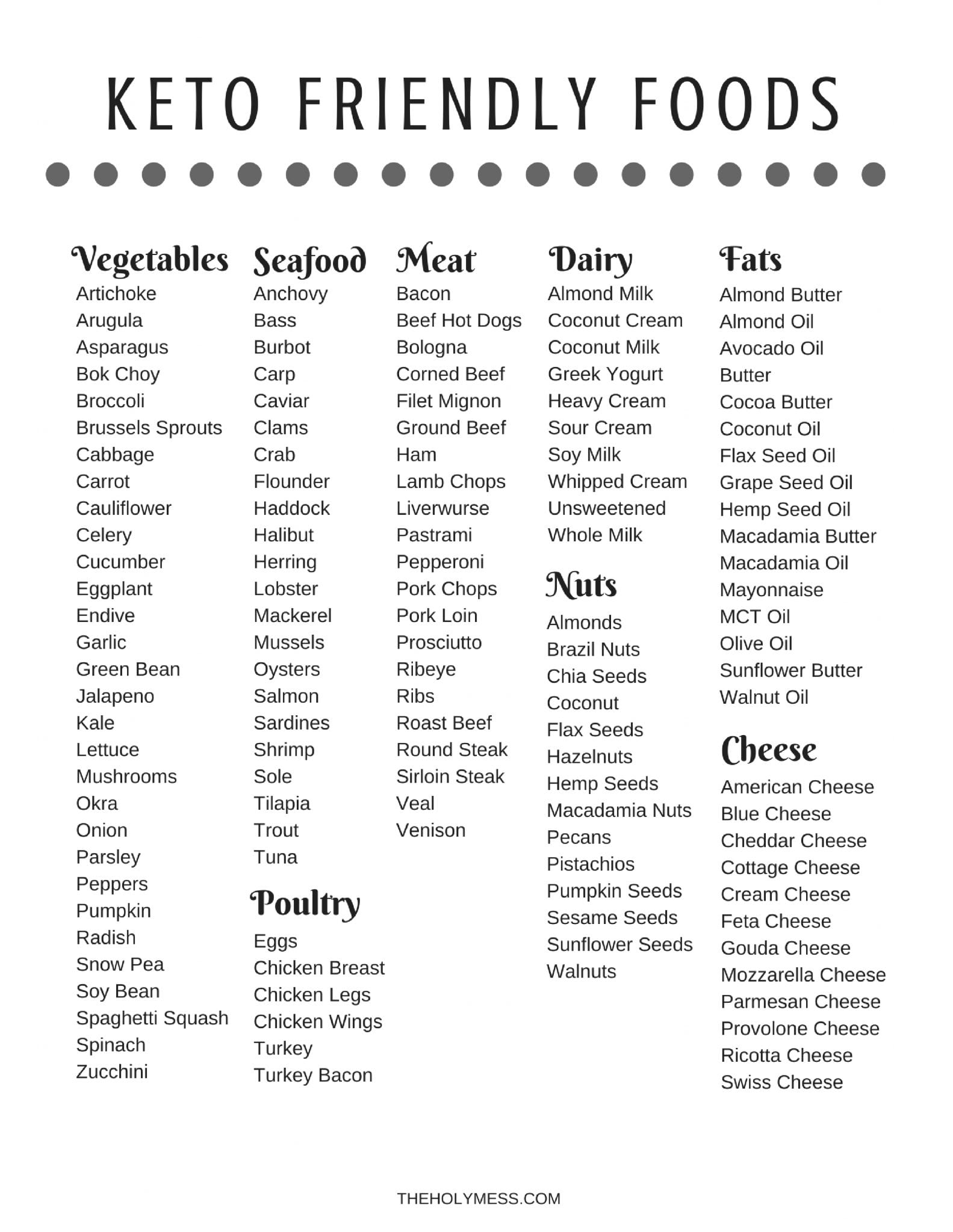 Free Printable Keto Friendly Food ListFree Printable Keto Friendly Food List
