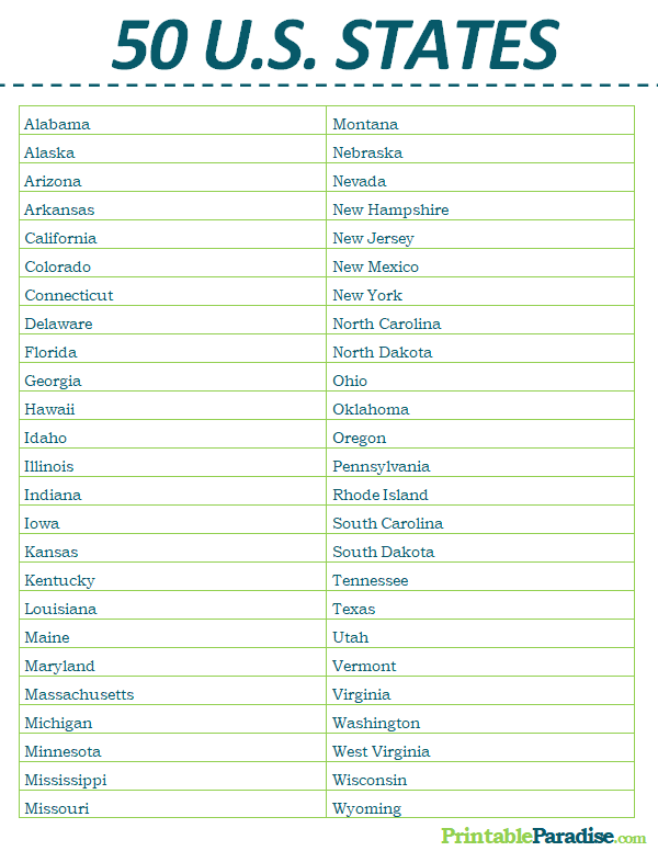 Free List Of 50 States Printable are pre-formatted files delivered as formats like Excel spreadsheets, Word docs, or PDFs. You can easily access, personalize, and print them List Of 50 States Printable for any use—be it work, study, or personal planning. They serve a broad variety of needs—from daily planners and budget trackers to CV templates and event invites.