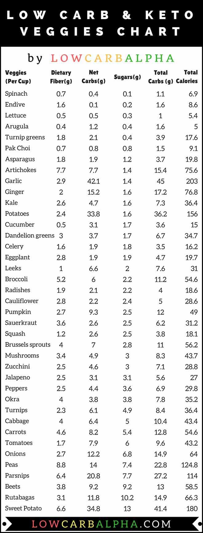 What Are List Of Carbs In Vegetables And Printable Chart?