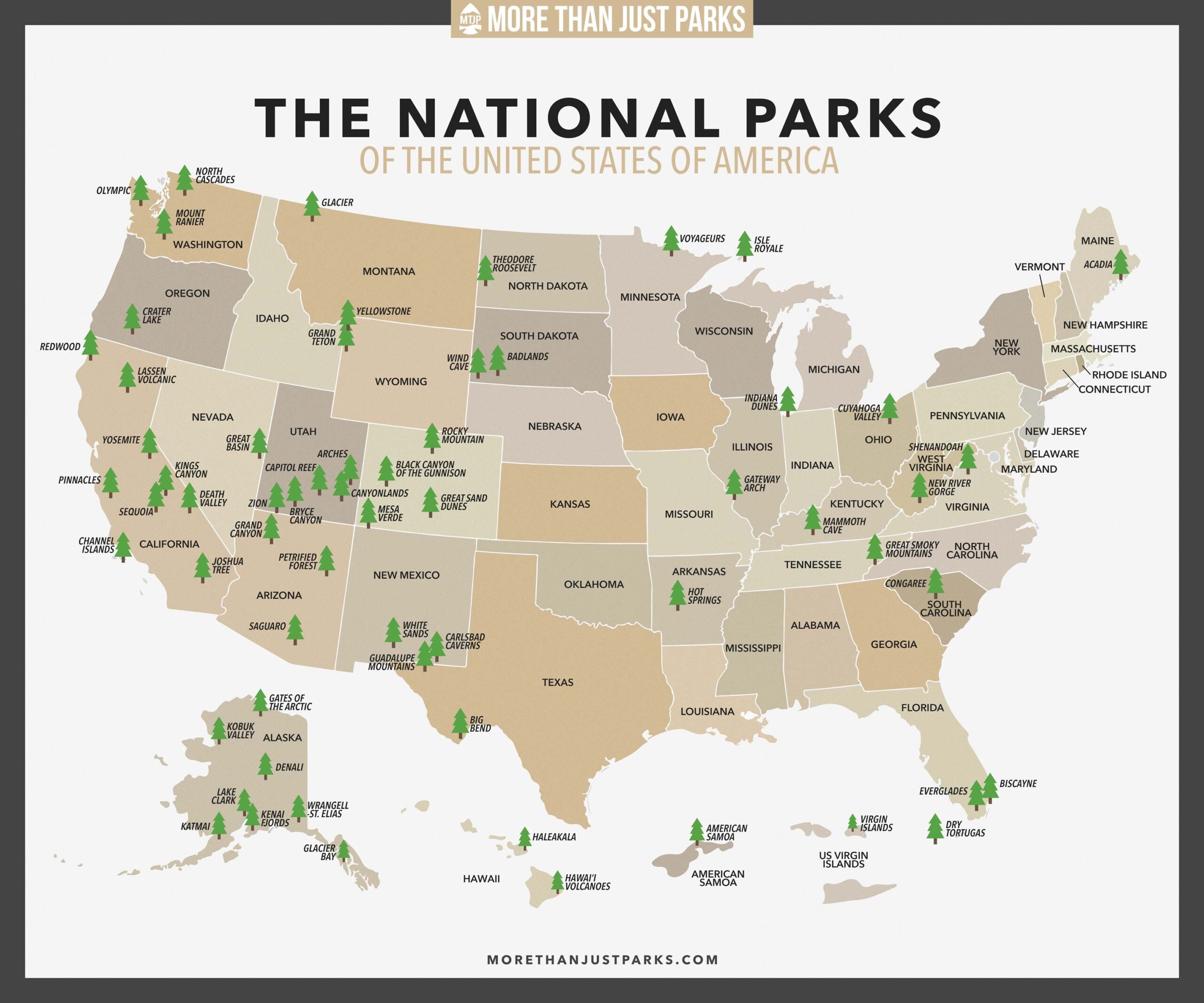 Helpful List Of NATIONAL PARKS By State Printable MAP Helpful List Of NATIONAL PARKS By State Printable MAP