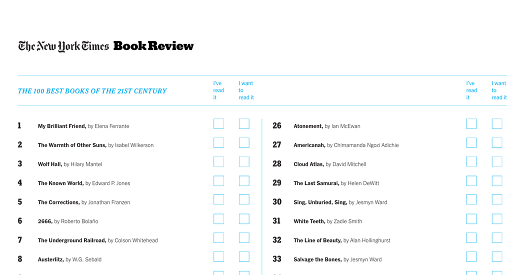 Final Thoughts Nyt 100 Best Books Of The 21st Century Printable List