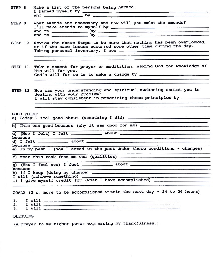Final Thoughts Printable Aa 4th Step Worksheets