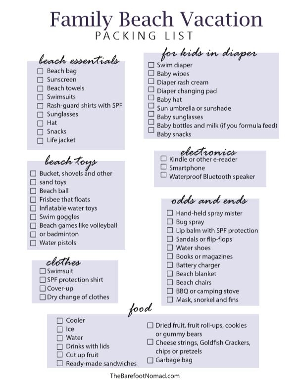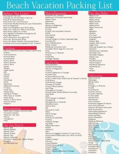 Printable Packing List For Beach Vacation