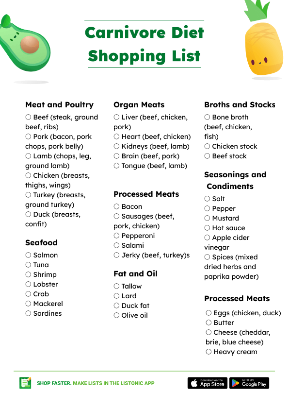 Printable Carnivore Diet Food ListPrintable Carnivore Diet Food List