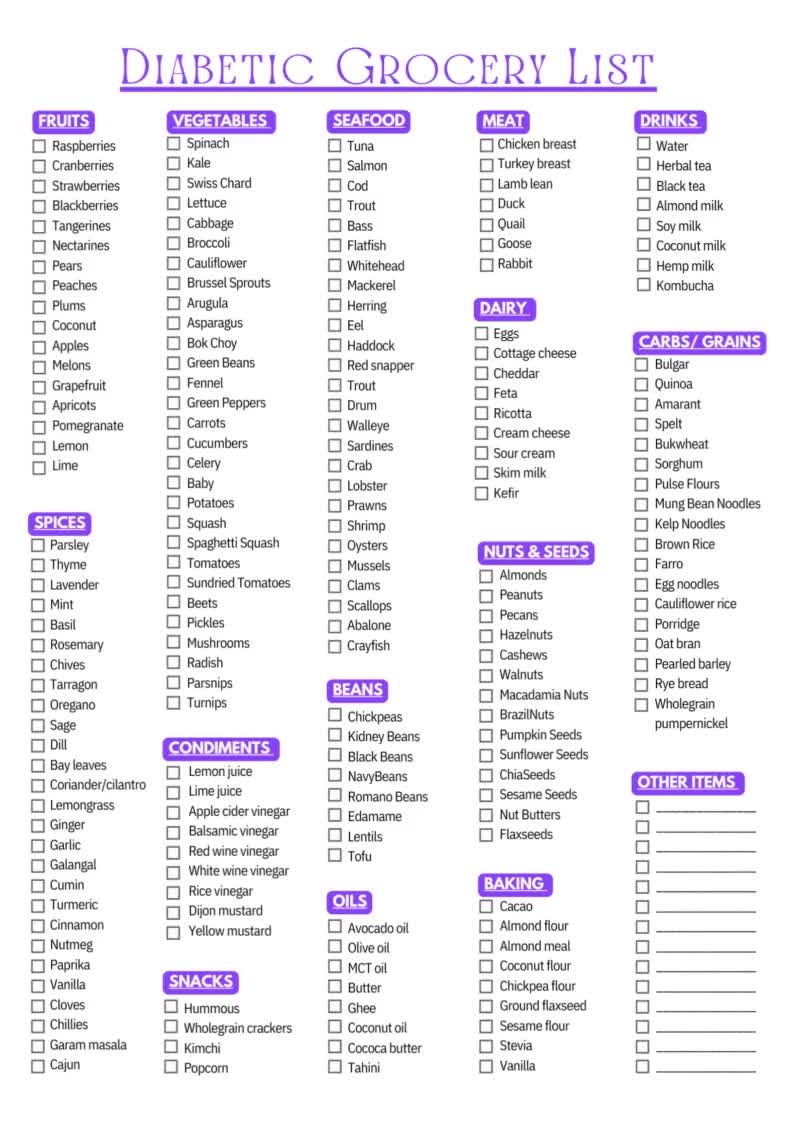 Diabetic Food List Printable PDF Type Diabetes Grocery 47 OFF