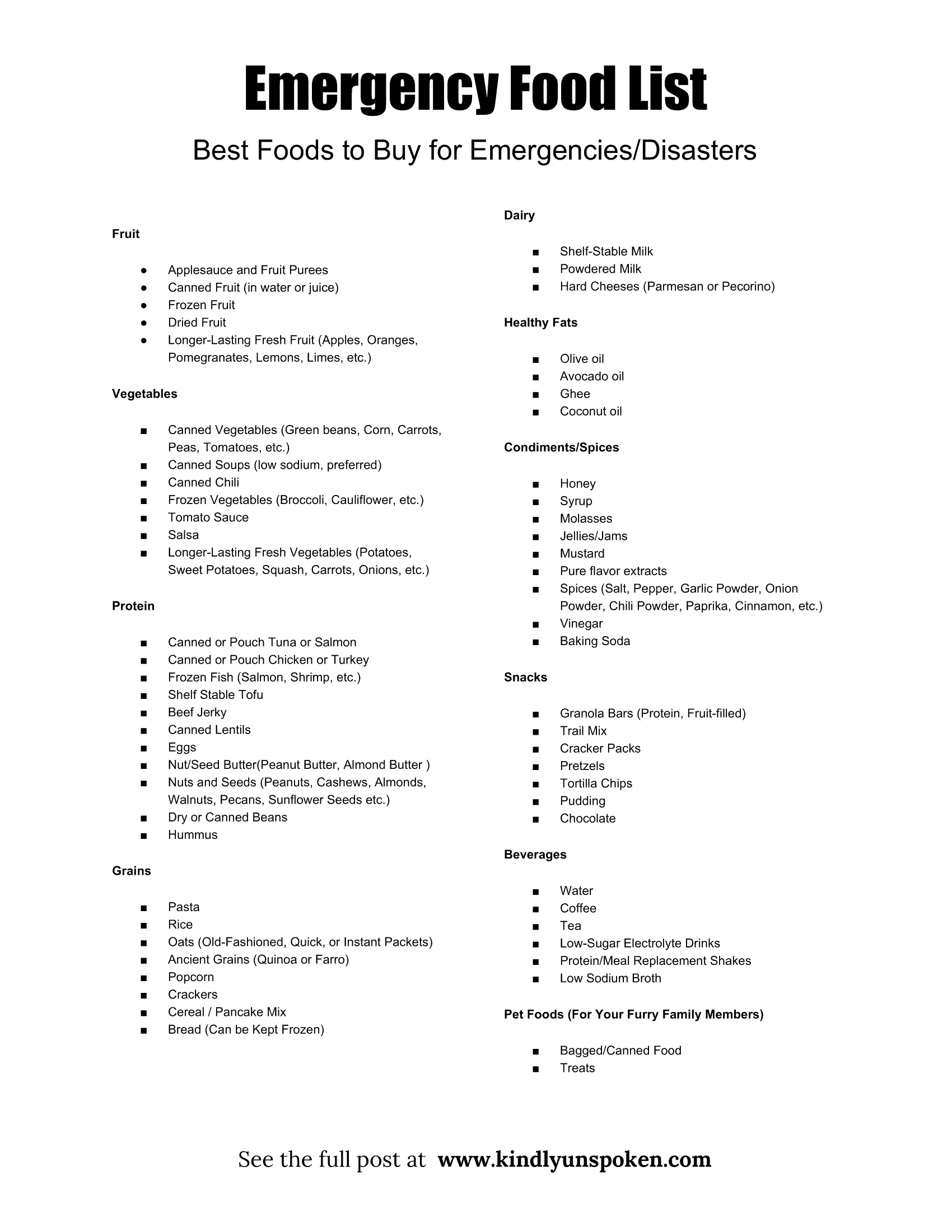 In times of emergency or natural disasters, having a well-stocked emergency food supply can make a significant difference in your ability to stay safe and nourished. Creating a printable emergency food list is an essential step in ensuring that you and your family are prepared for any unexpected events.