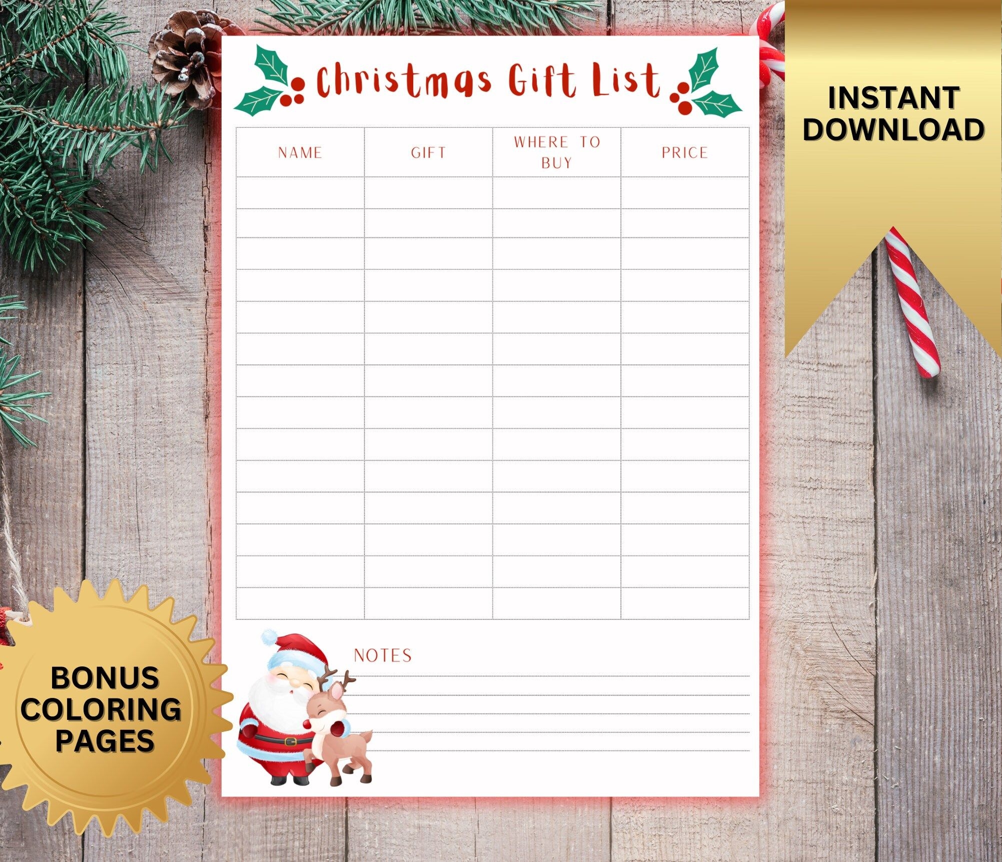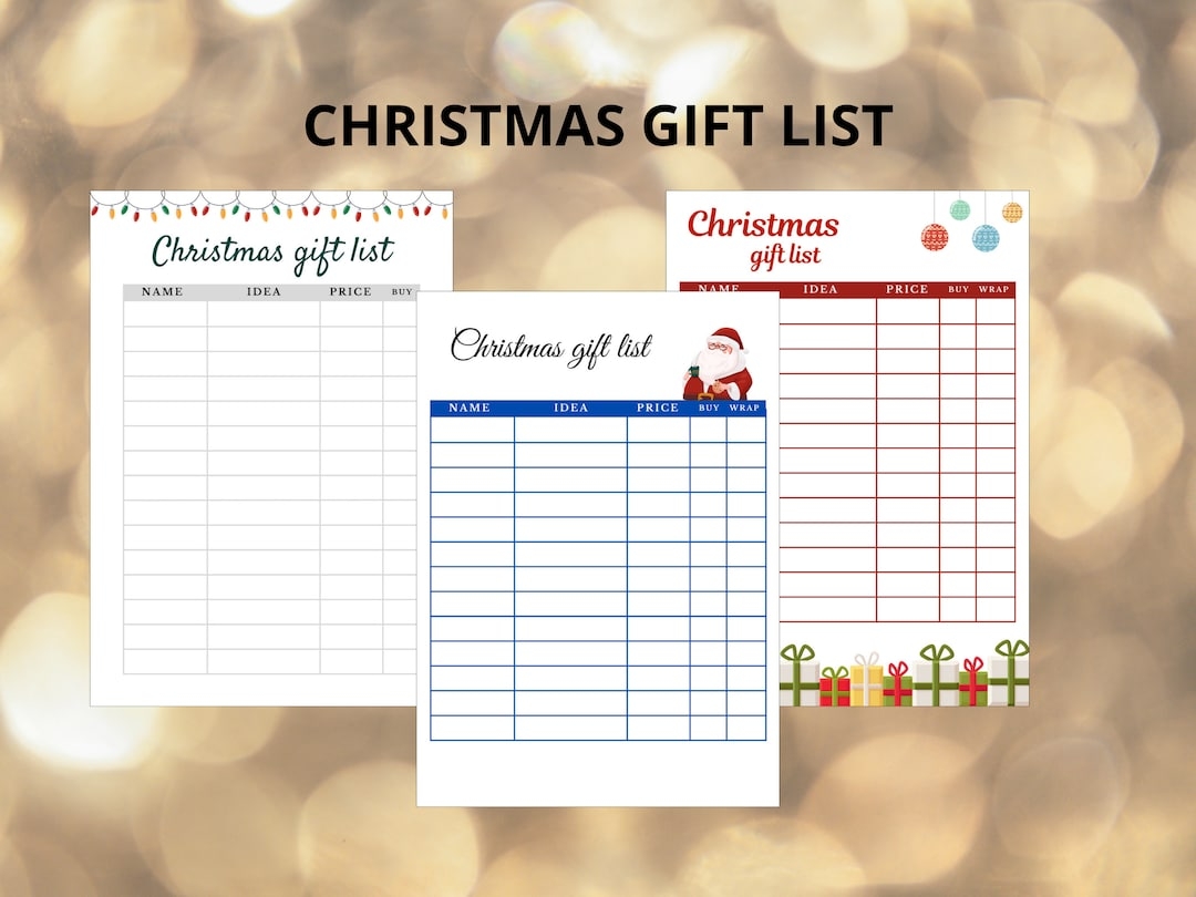 Printable Gift List Christmas List Digital Download Etsy
