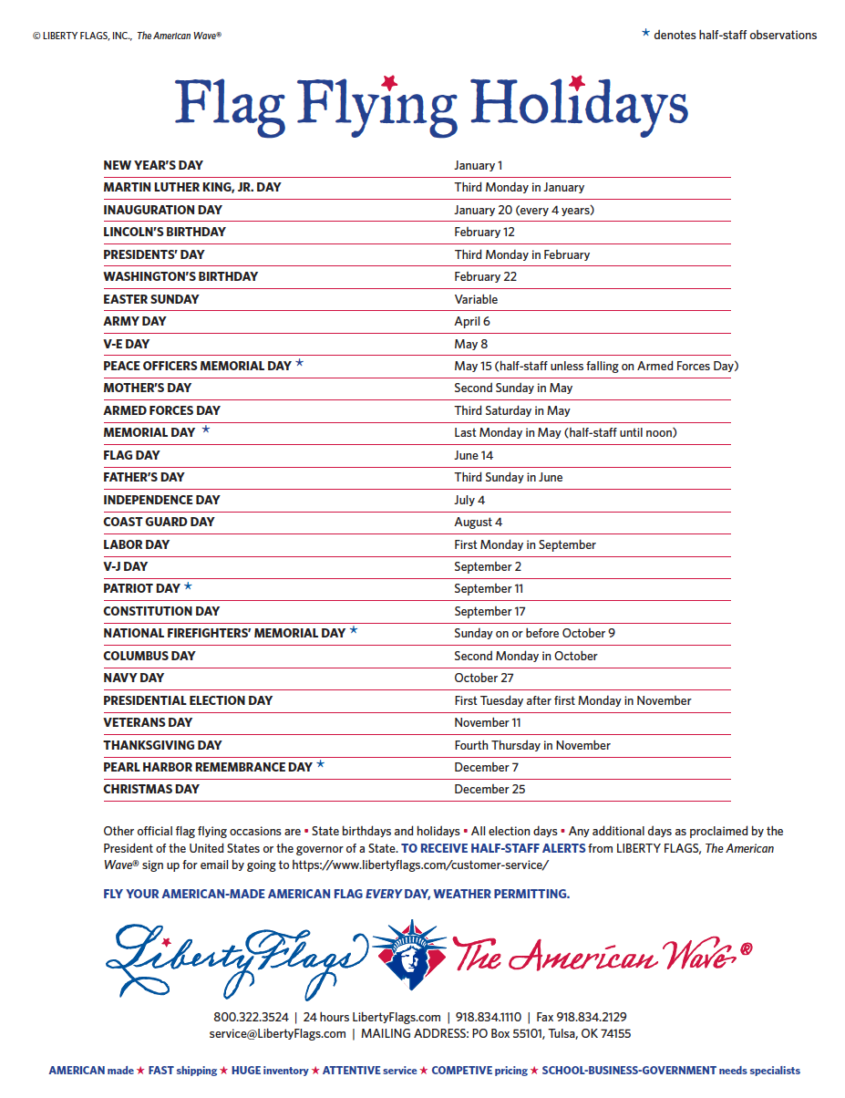 Printable List Of Days To Fly The American Flag