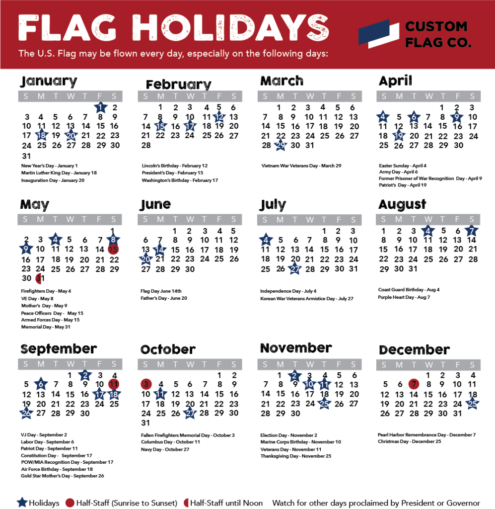 Having a printable list of days to fly the American flag can be a helpful tool to ensure that you are displaying it appropriately and respectfully. Whether you are a homeowner, business owner, or government entity, knowing when to fly the flag is a way to show respect for the country and its values.