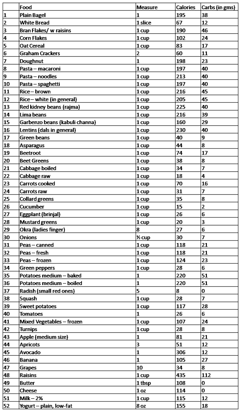 Carbohydrate Foods ListCarbohydrate Foods List