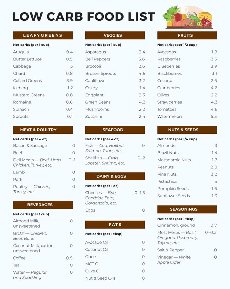 Following a low carbohydrate diet can be beneficial for weight loss, managing diabetes, and improving overall health. By focusing on consuming foods that are low in carbs, you can help regulate blood sugar levels and promote fat loss. To make it easier to plan your meals, here is a printable list of low carbohydrate foods that you can refer to: