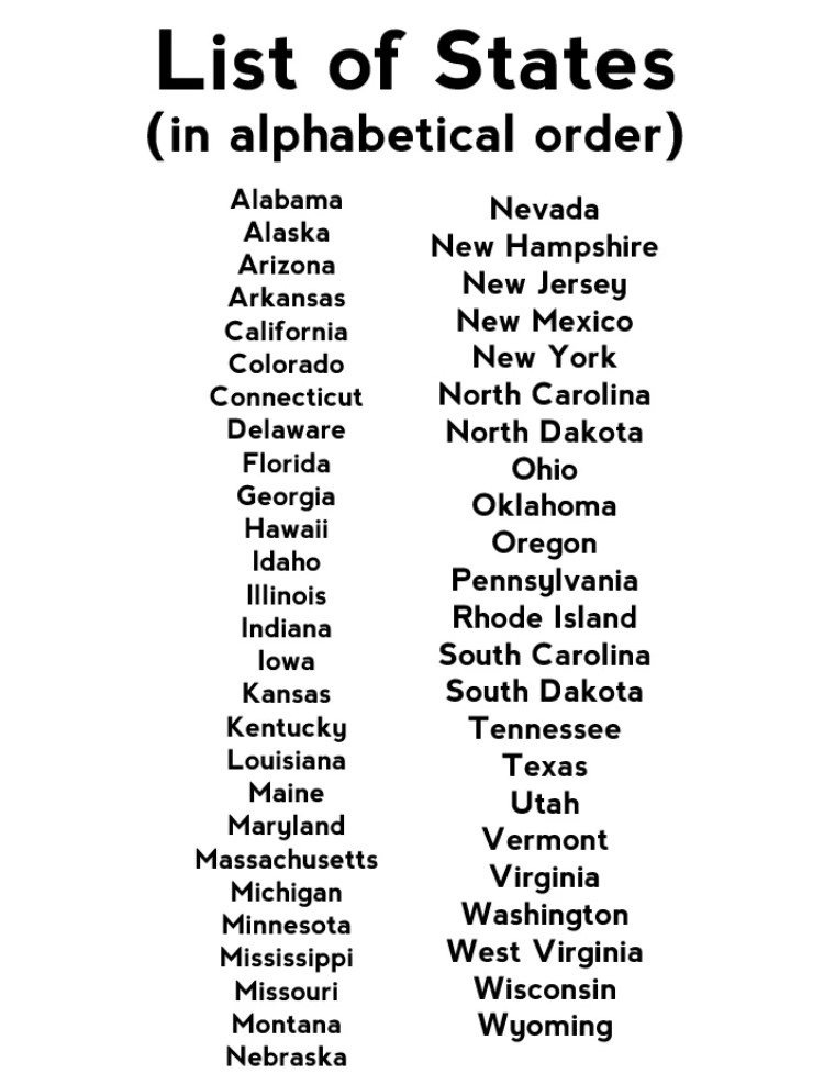Printable List Of Us States And Abbreviations In Alphabetical Order