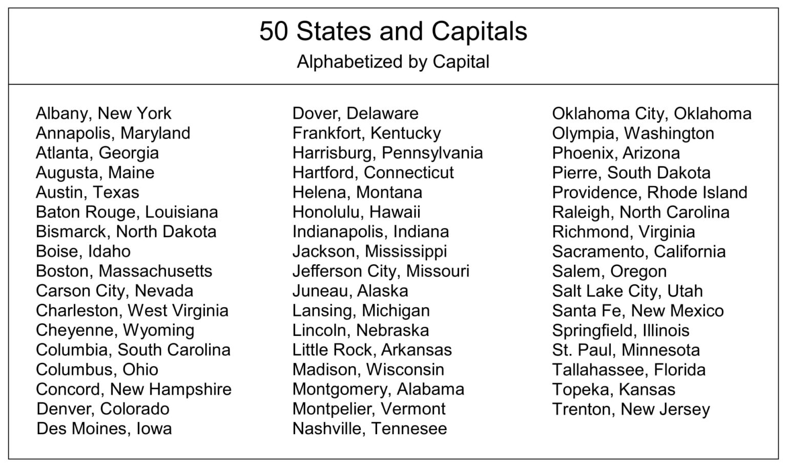 Final Thoughts Printable List Of Us State Capitals