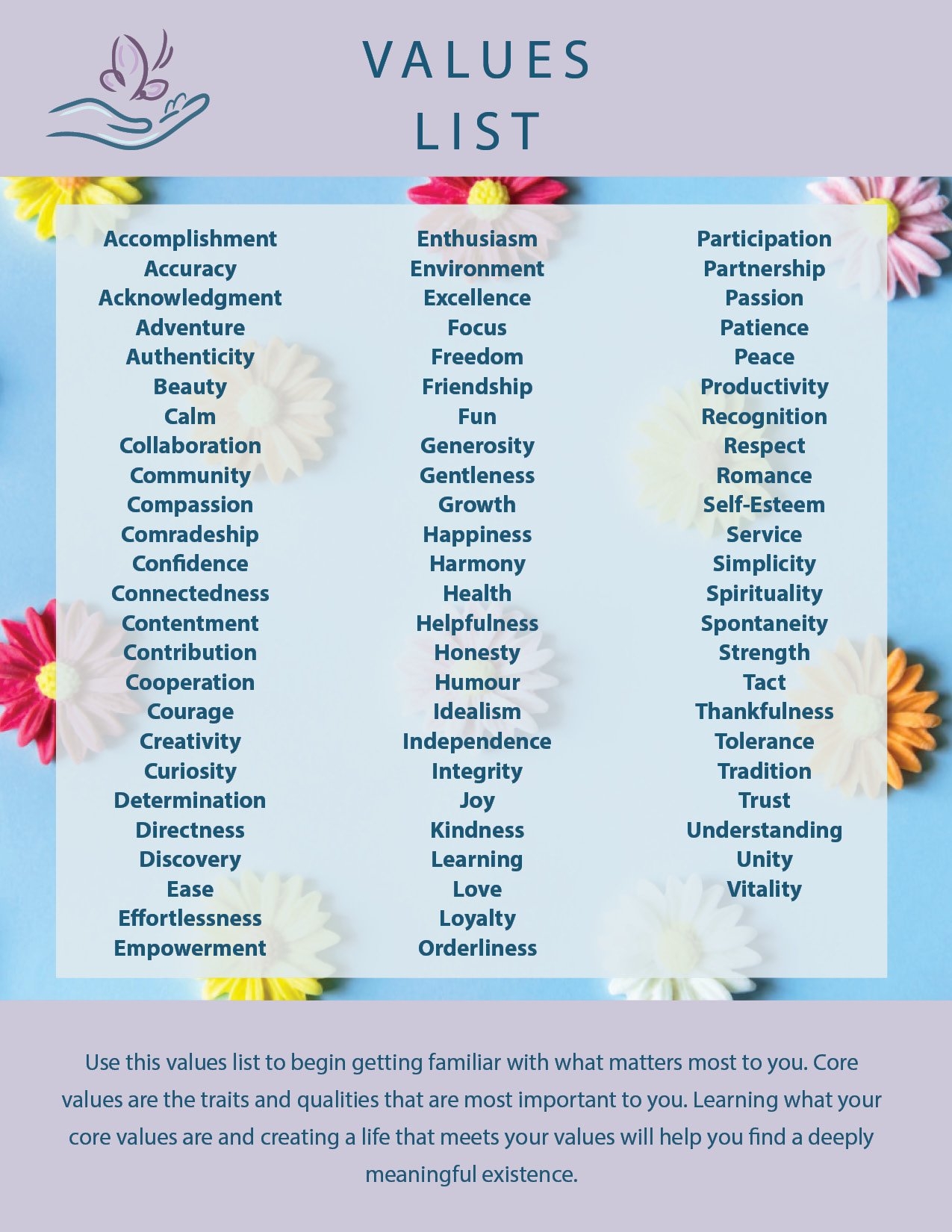 In today’s fast-paced world, it can be easy to lose sight of what truly matters to us. That’s where printable lists of values come in handy. These lists serve as a reminder of the principles and beliefs that guide our actions and decisions. By having a tangible document that outlines our core values, we can stay grounded and focused amidst the chaos of daily life.
