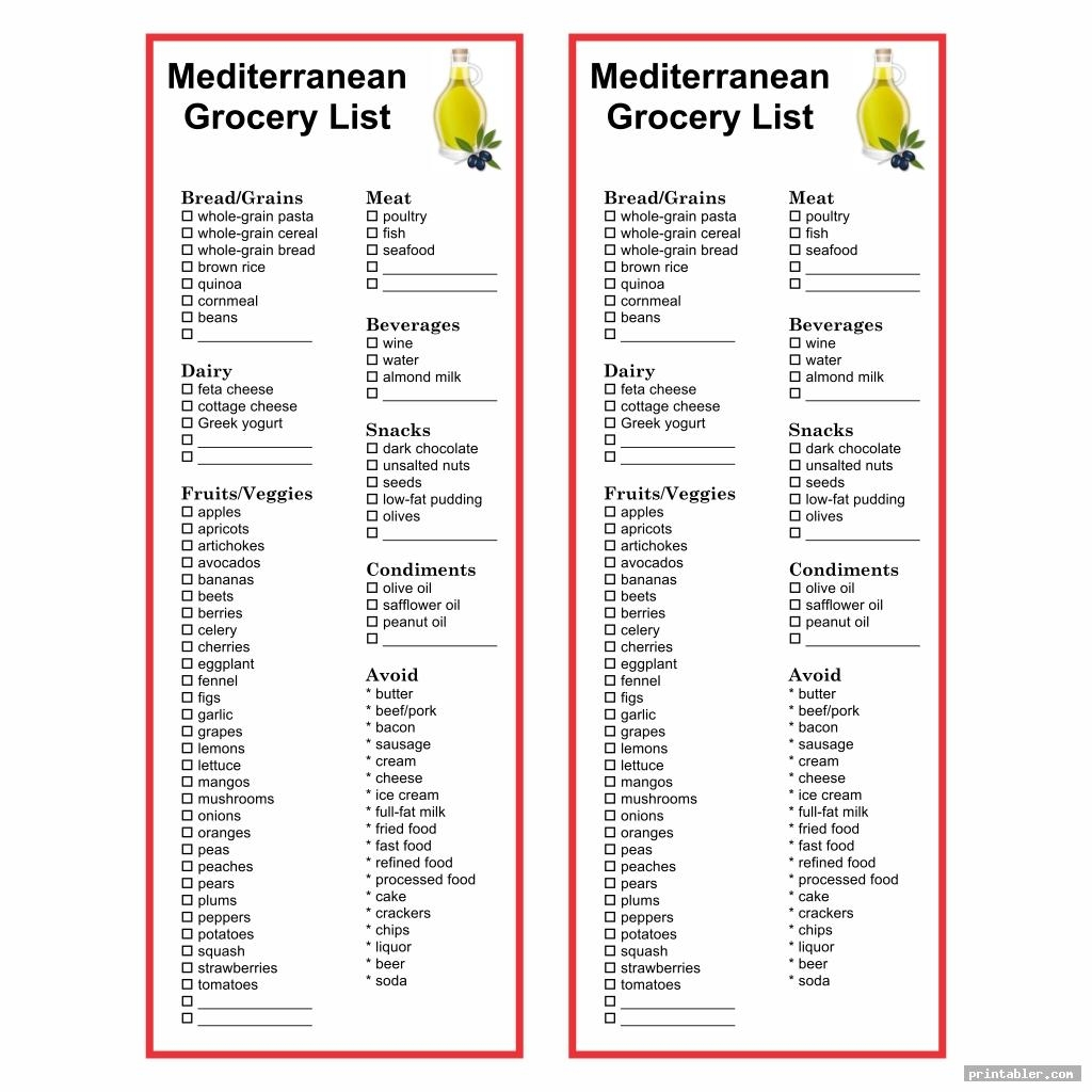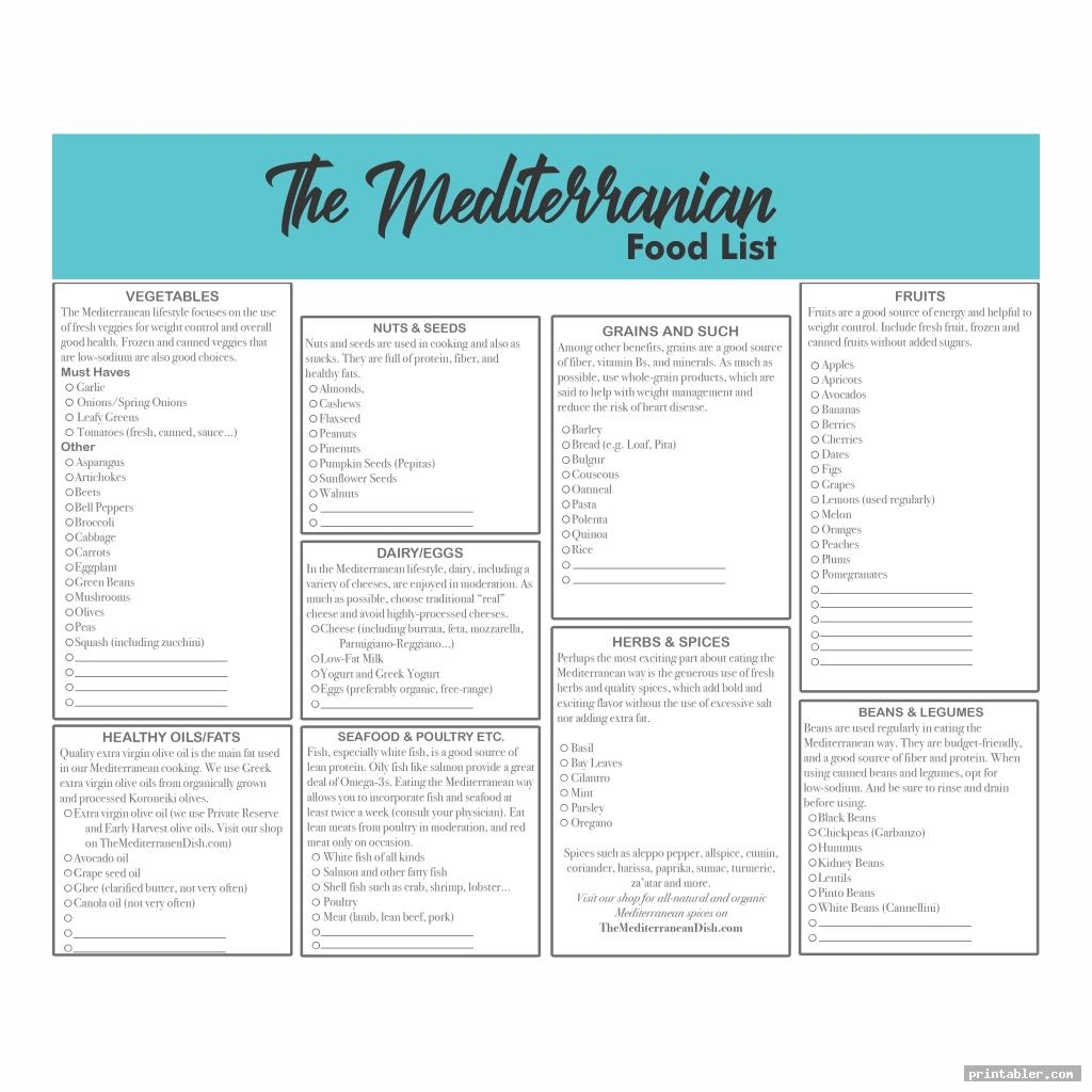 Printable Mediterranean Diet Food List Free Printable Template