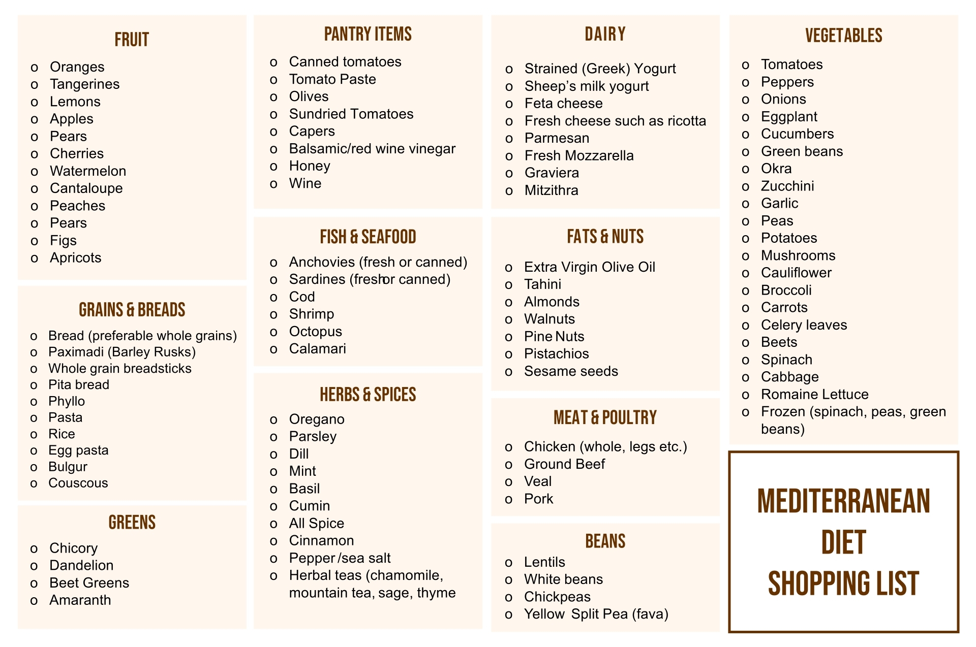 Printable Mediterranean Diet Food List