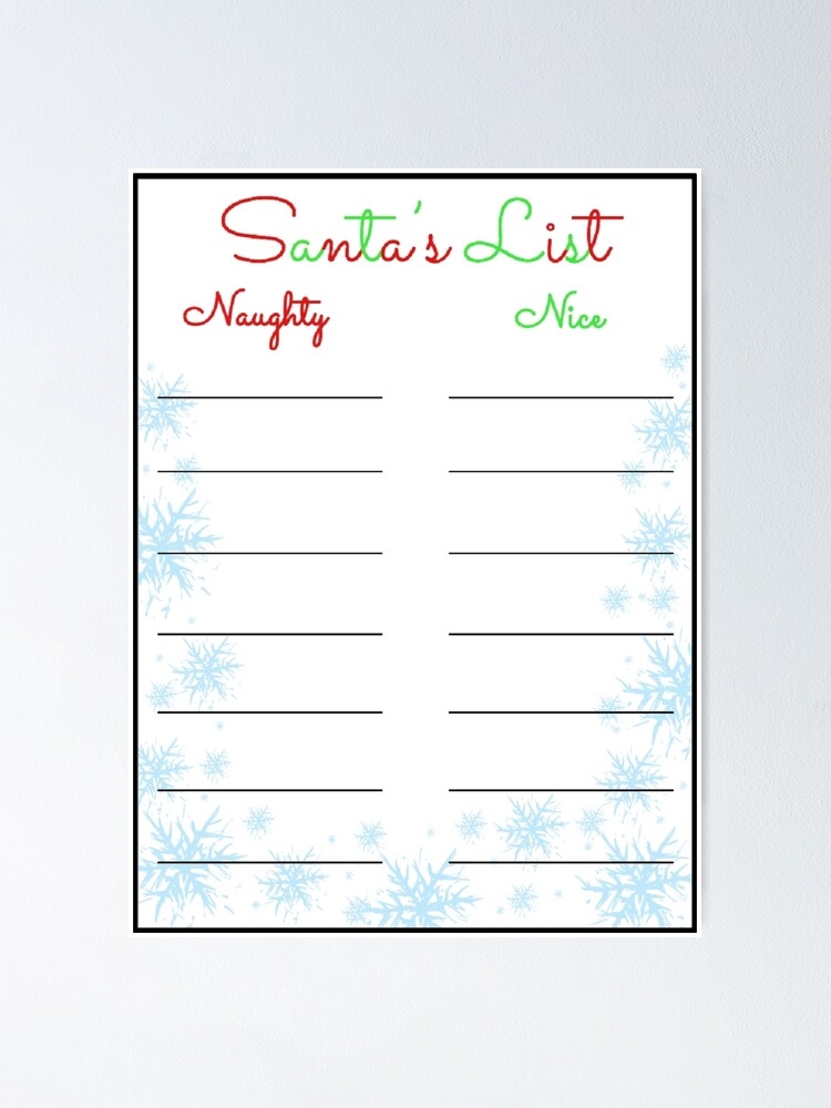 Printable Naughty Nice List are ready-made layouts available in formats like Picture, Jpeg. You can easily access, personalize, and print them Printable Naughty Nice List for personal, educational, or professional use. They serve a diverse set of needs—from weekly schedules and finance sheets to CV templates and event invites.