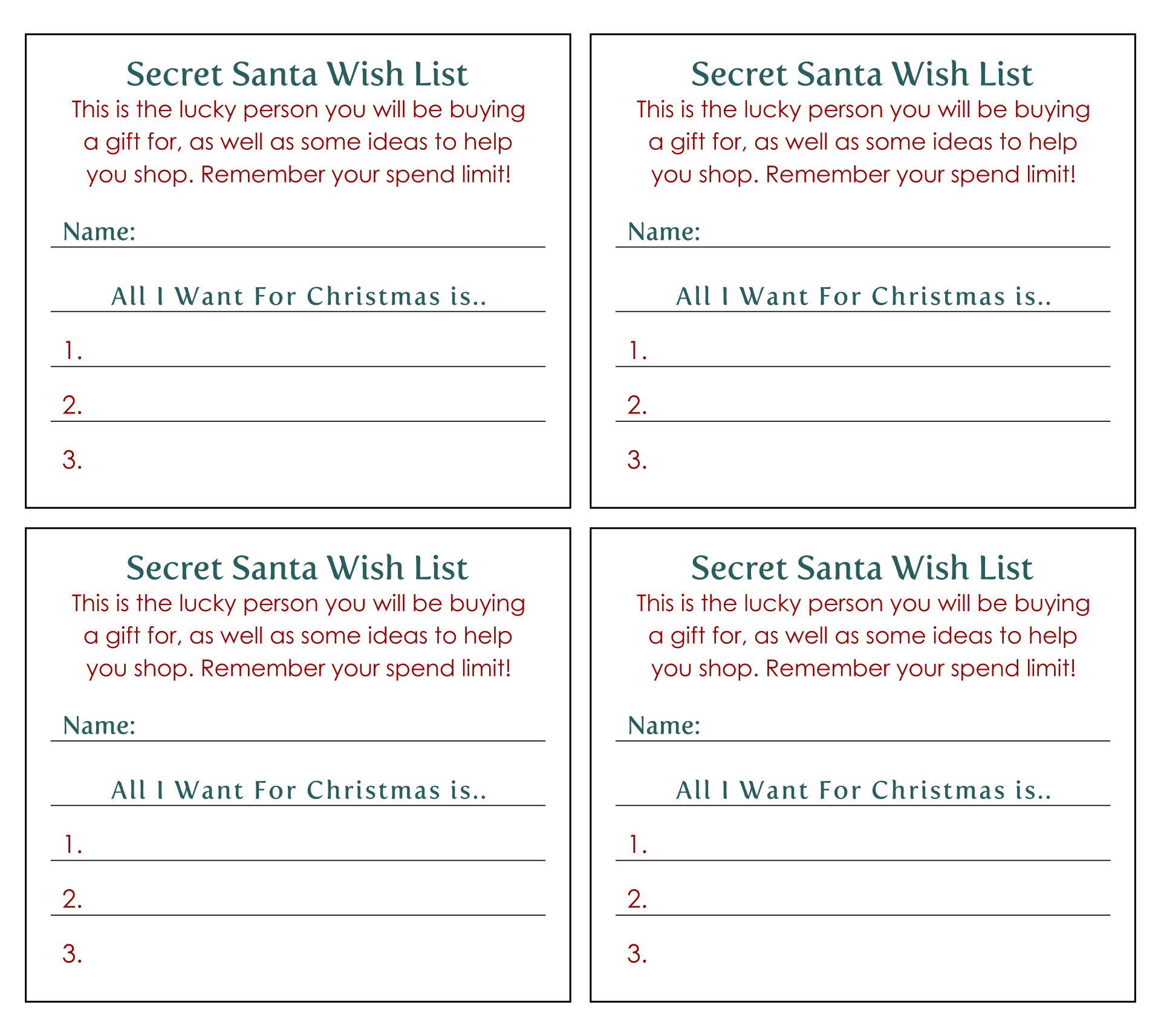 Creating a Secret Santa printable list can help to keep track of who is buying for whom and can make the whole process more organized. It can also be a fun way to add a bit of creativity to the gift-giving experience. With a printable list, participants can easily keep track of their assigned giftee and plan their gift accordingly.