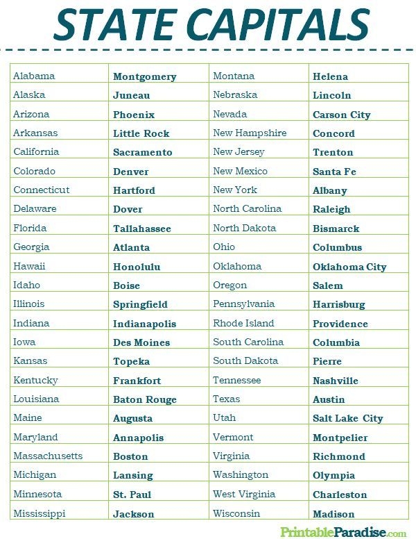 Printable List Of State Capitals Handy Printable MaterialsPrintable List Of State Capitals Handy Printable Materials