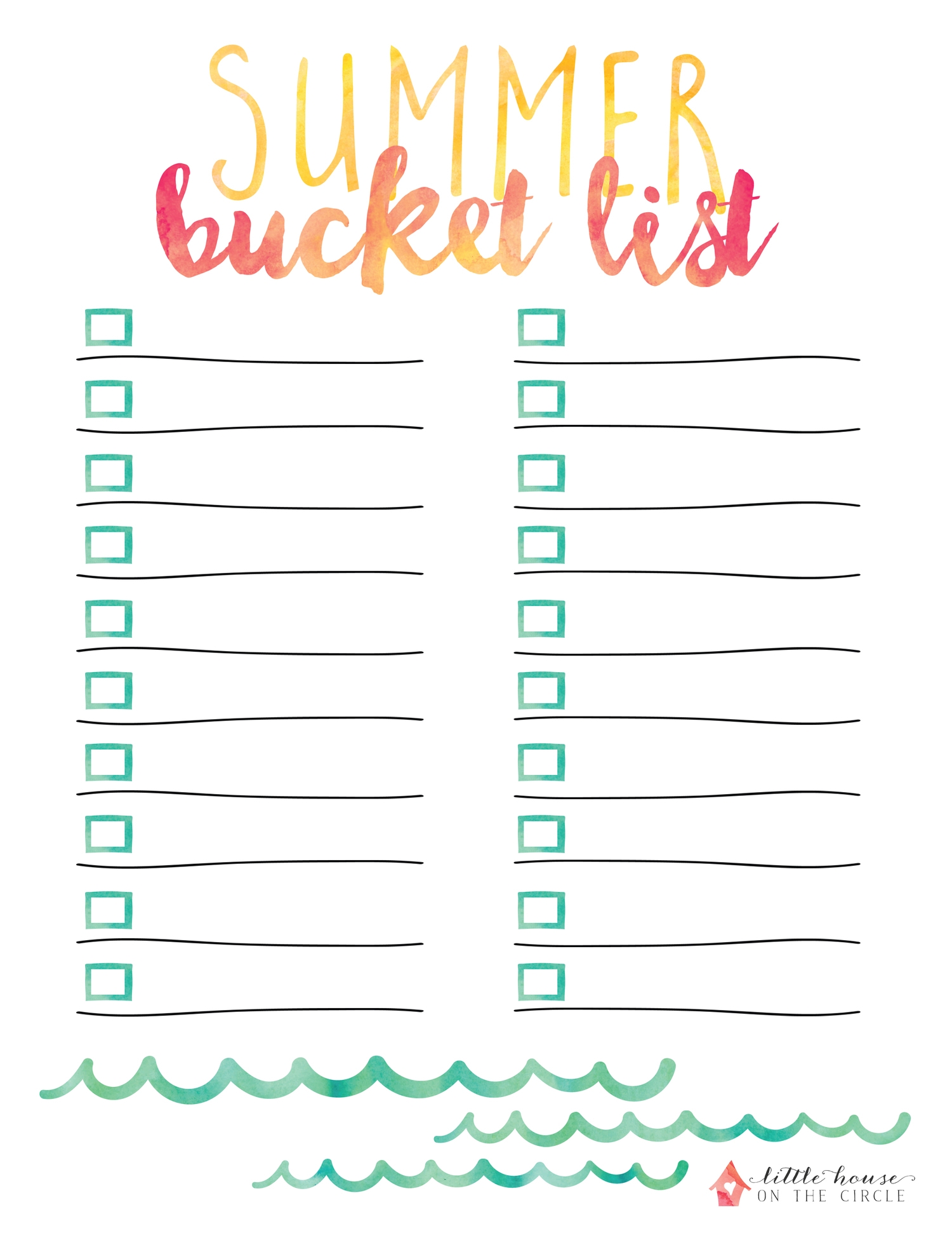 Free Printable Summer Bucket List Ideas Template Paper 50 OFF
