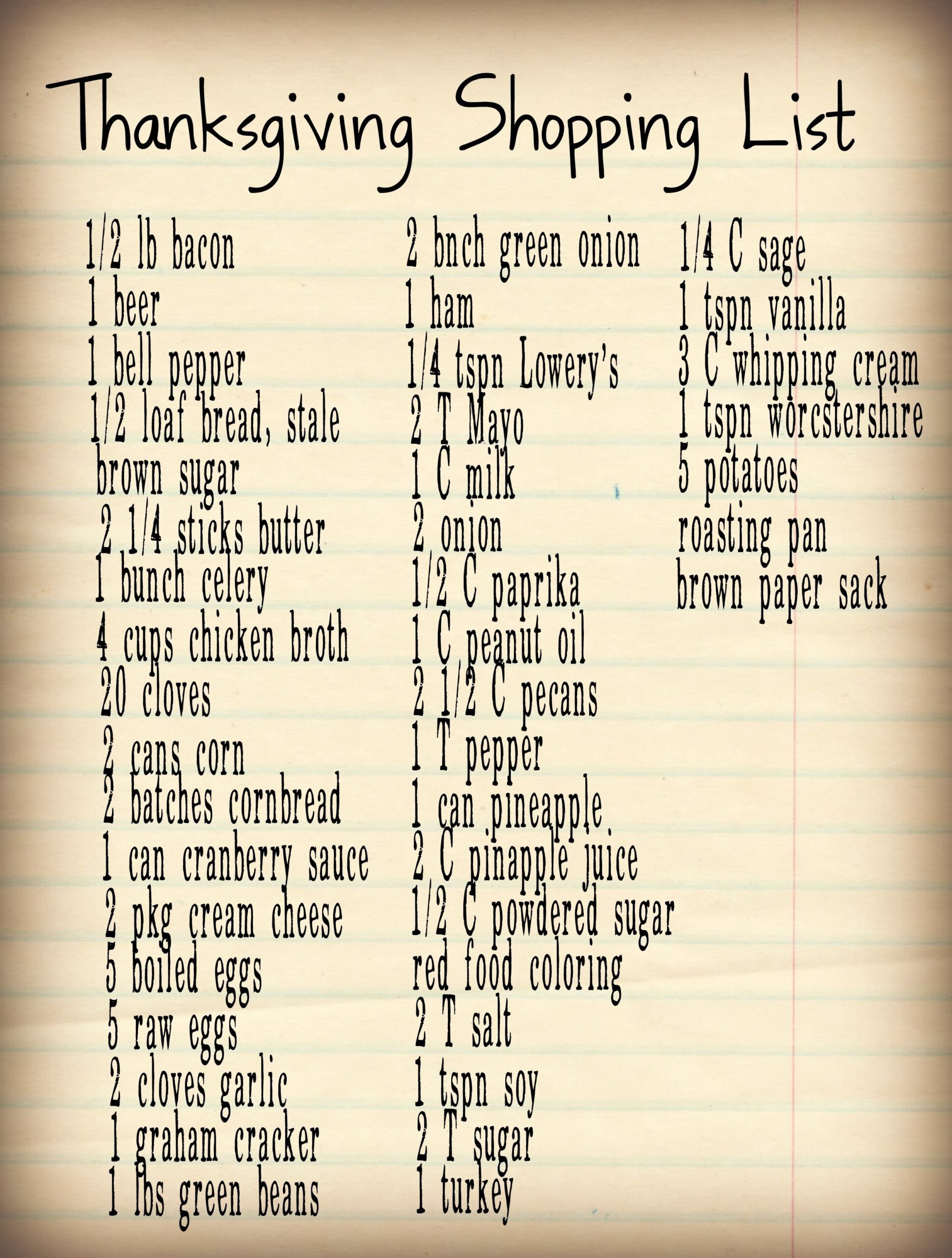 Thanksgiving Shopping List Printable